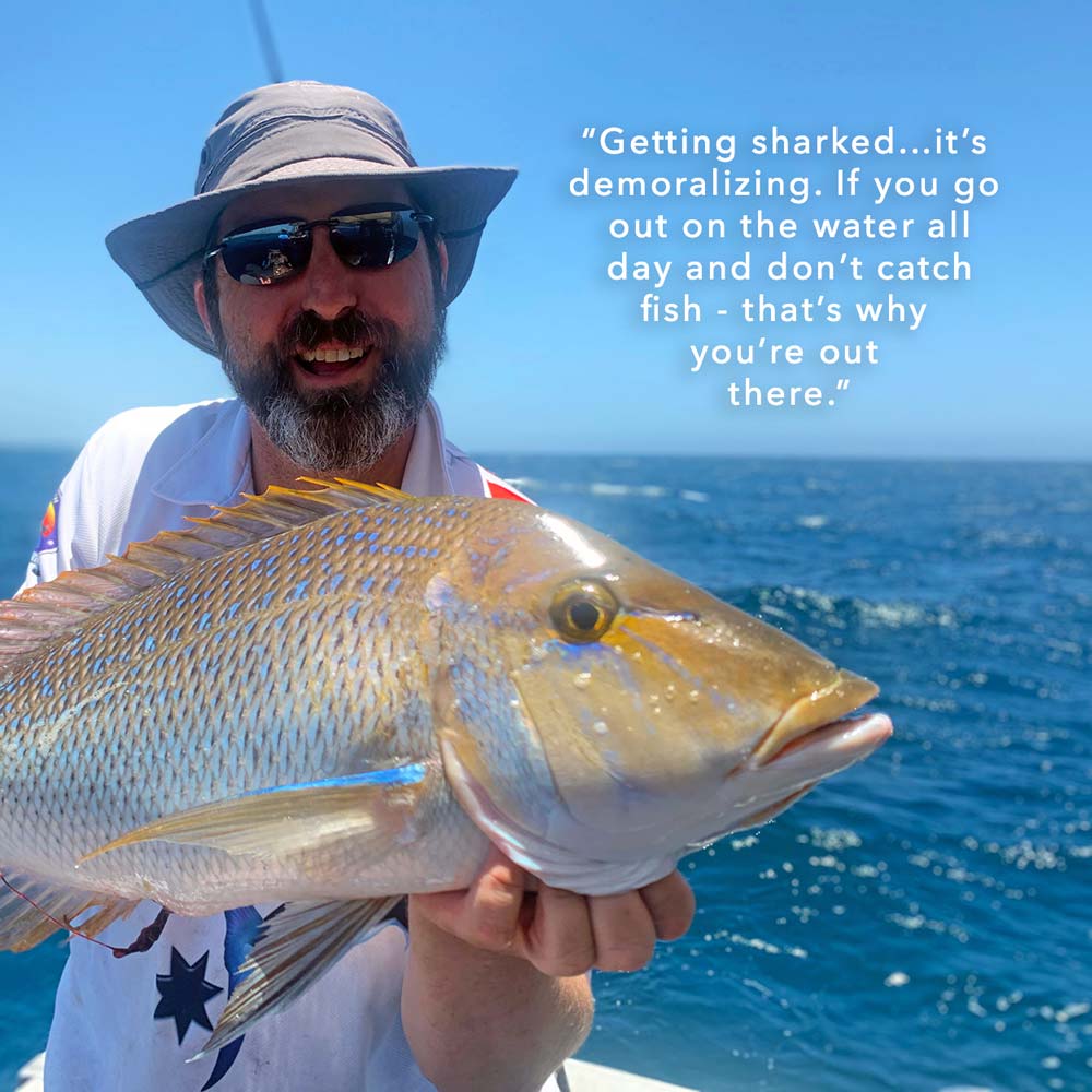 "Sharkbanz Fishing is going to help the recreational fishermen in all areas to catch more fish. We went to fishing ground that you can’t fish because of the shark population to test the devices and we bagged out. Some Captains call it Shark Alley because every fish they catch gets sharked. When we arrived, we always turn the sonar and the motors off but this time we didn’t. We wanted the best possible chance to bring the sharks in and catch fish in an area that’s known for getting sharked. So we were fishing in Shark Alley with the devices, and we landed heaps of fish. We landed 5 really good Snappers, and the only one we lost was because I rigged the device too long, and it was too far away from the fish. To land fish in Shark Alley made it a really good day."
